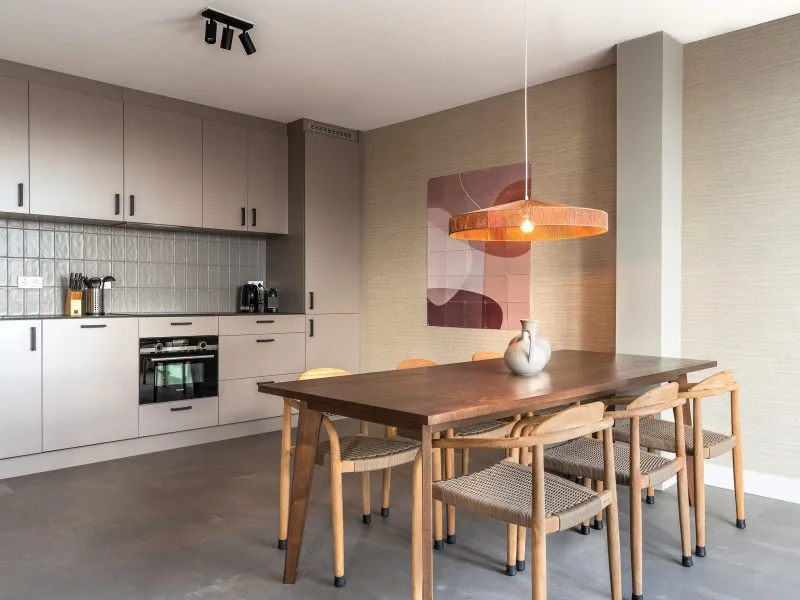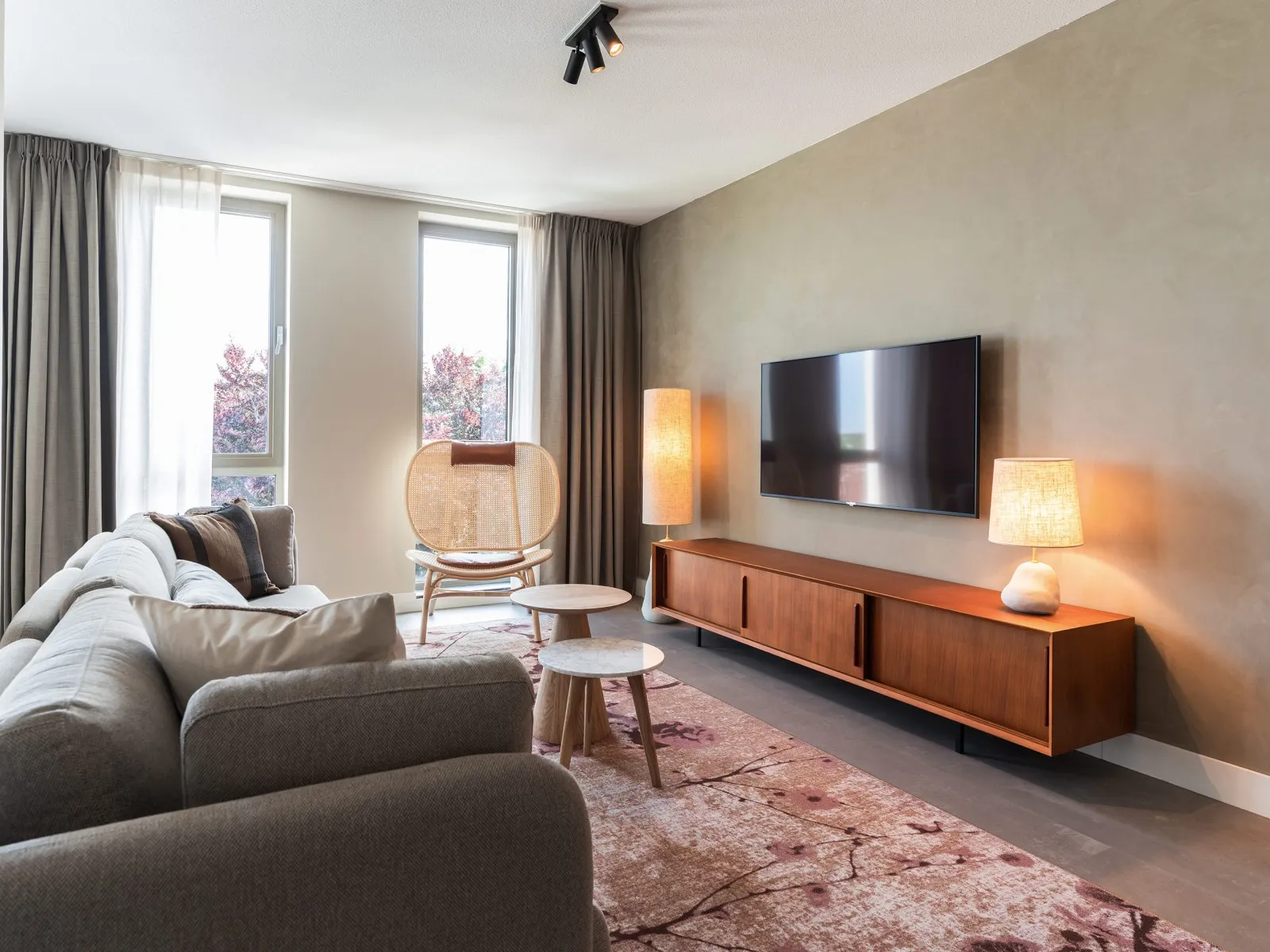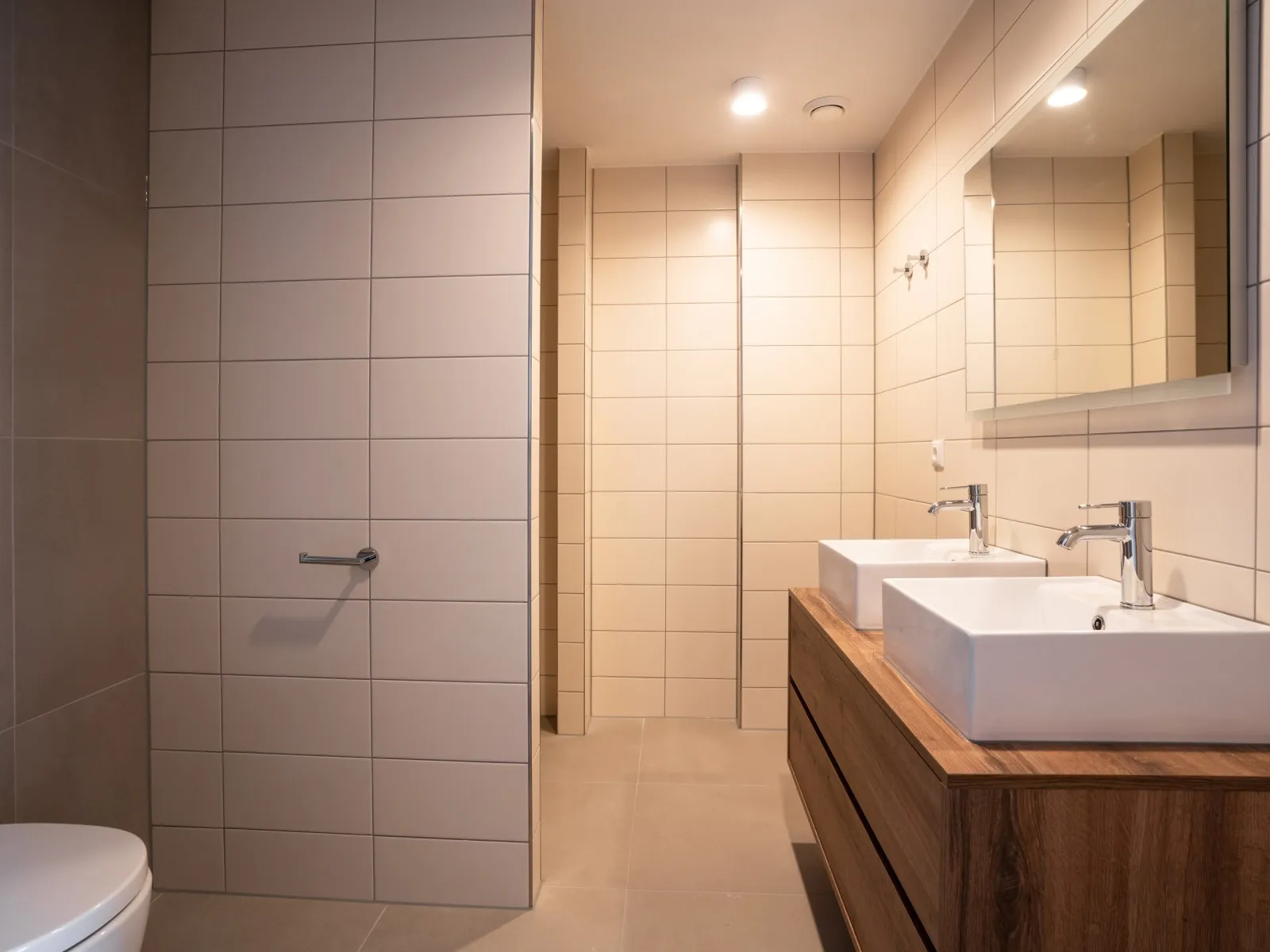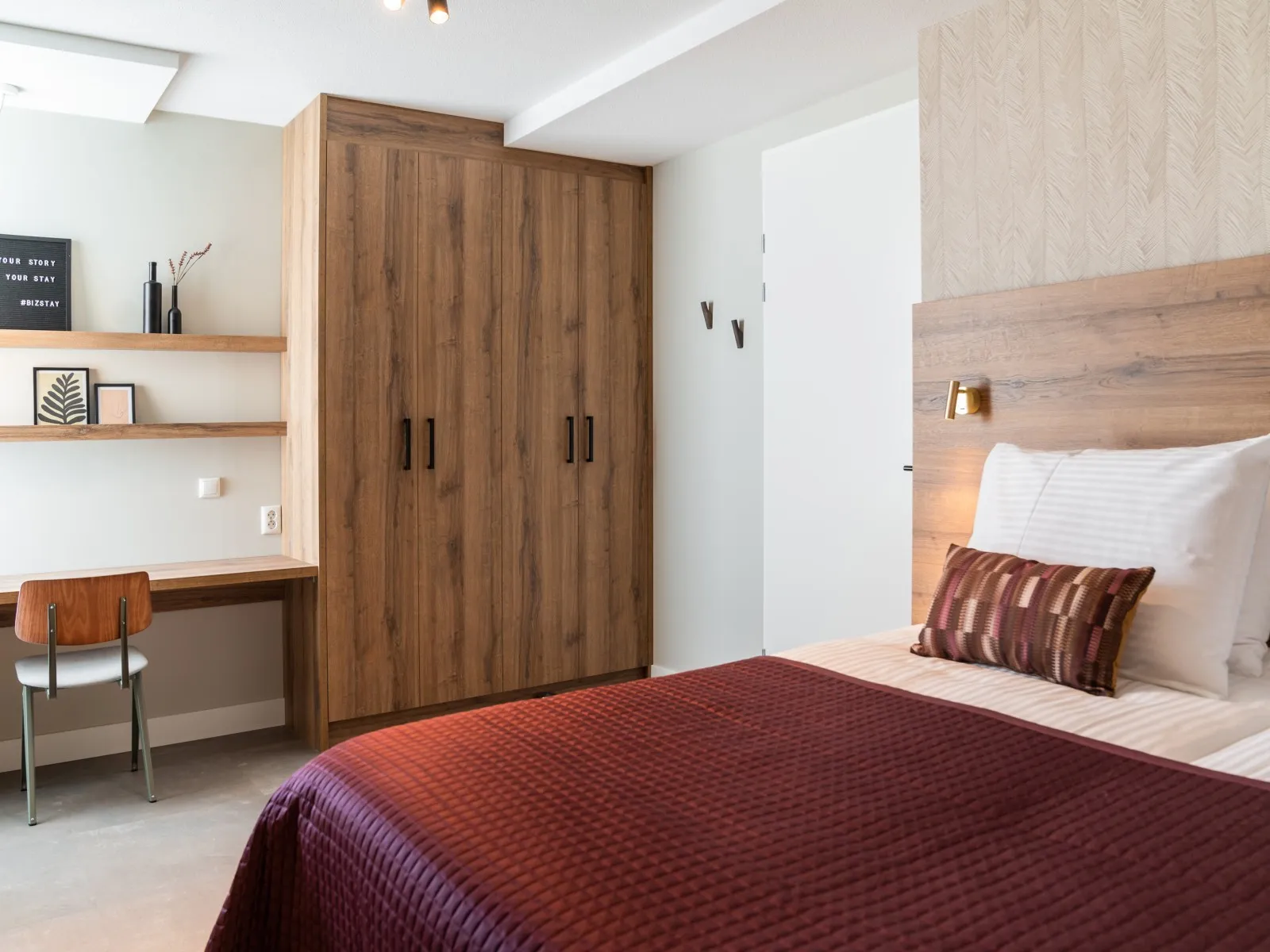 These spacious 2-bedroom apartments, each covering 91 sqm, provide a generous alternative to the smaller 2-bedroom units. They can comfortably host up to 4 guests, making them ideal for both shorter and extended stays. Upon entering, you'll immediately sense the warm and inviting atmosphere consistently woven into the interior design. This ambiance is marked by a harmonious fusion of natural colors, materials, and contemporary technology. The apartment boasts a fully equipped kitchen, a roomy dining area, a comfortable sofa, and a large SMART TV with Chromecast. Both bedrooms are spacious and come equipped with comfortable beds, SMART TVs with Chromecast, desks, and ample closet space. The large bathroom includes a shower, a double washbasin with drawers, a heated mirror, and a toilet. There is also a separate second toilet and a dedicated laundry room furnished with a washing machine and dryer. Additionally, the apartment features a 4 sqm balcony. Impressively, the electricity and heat you'll utilize during your stay are primarily generated by solar collectors, underscoring the sustainability of BizStay Walden as an eco-friendly building.