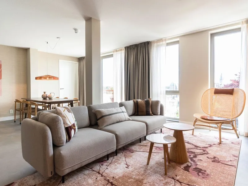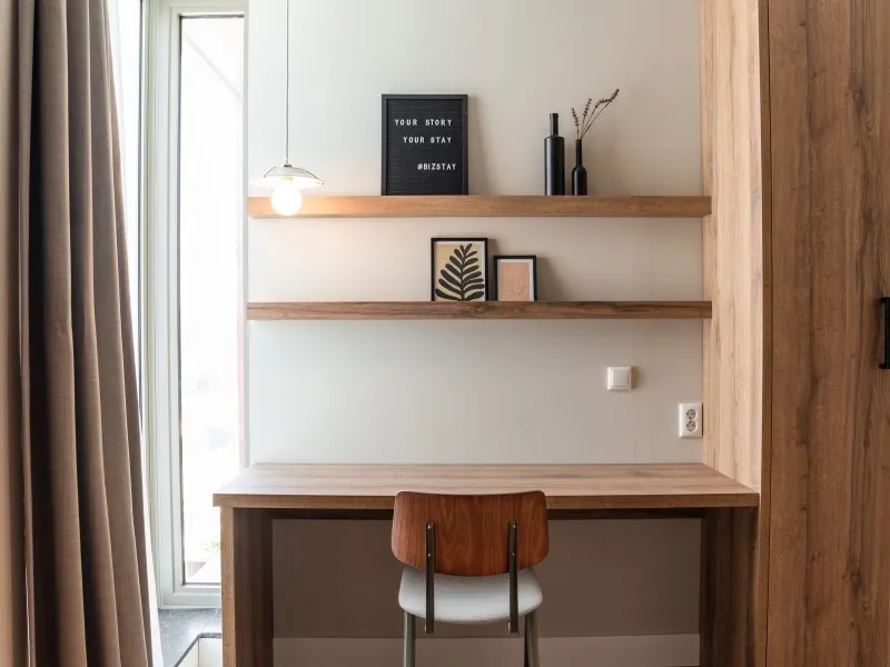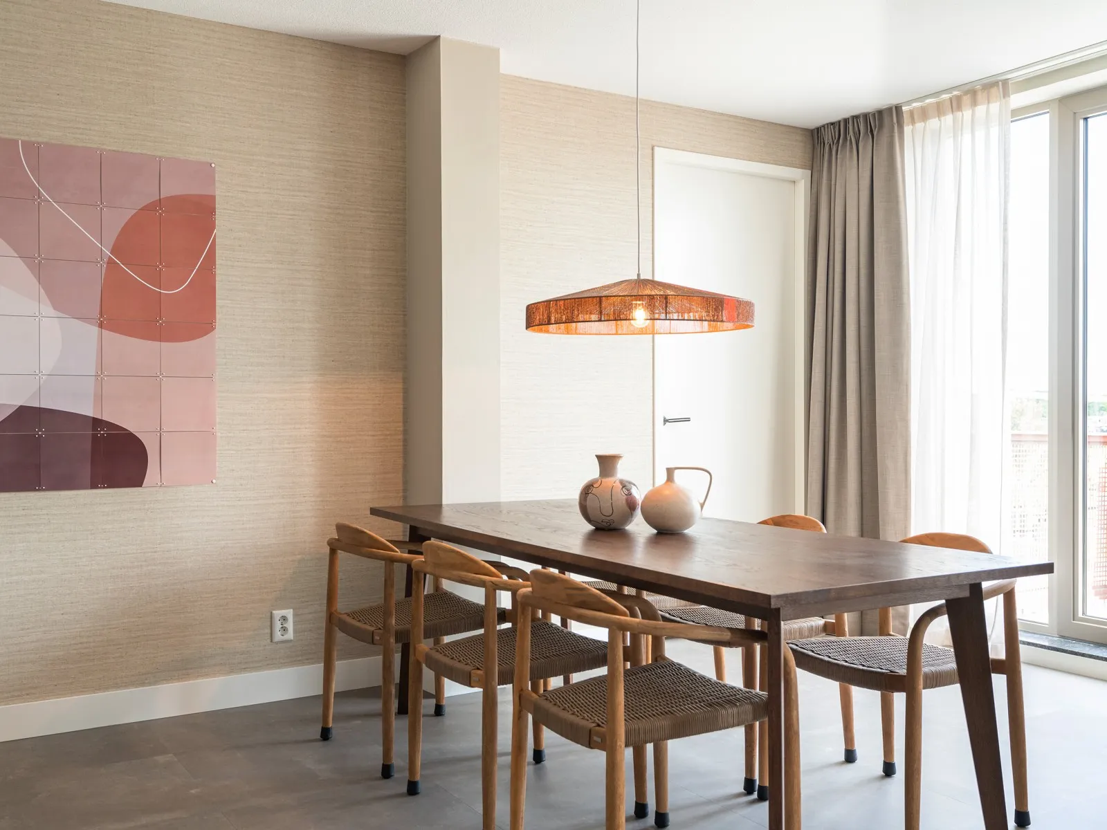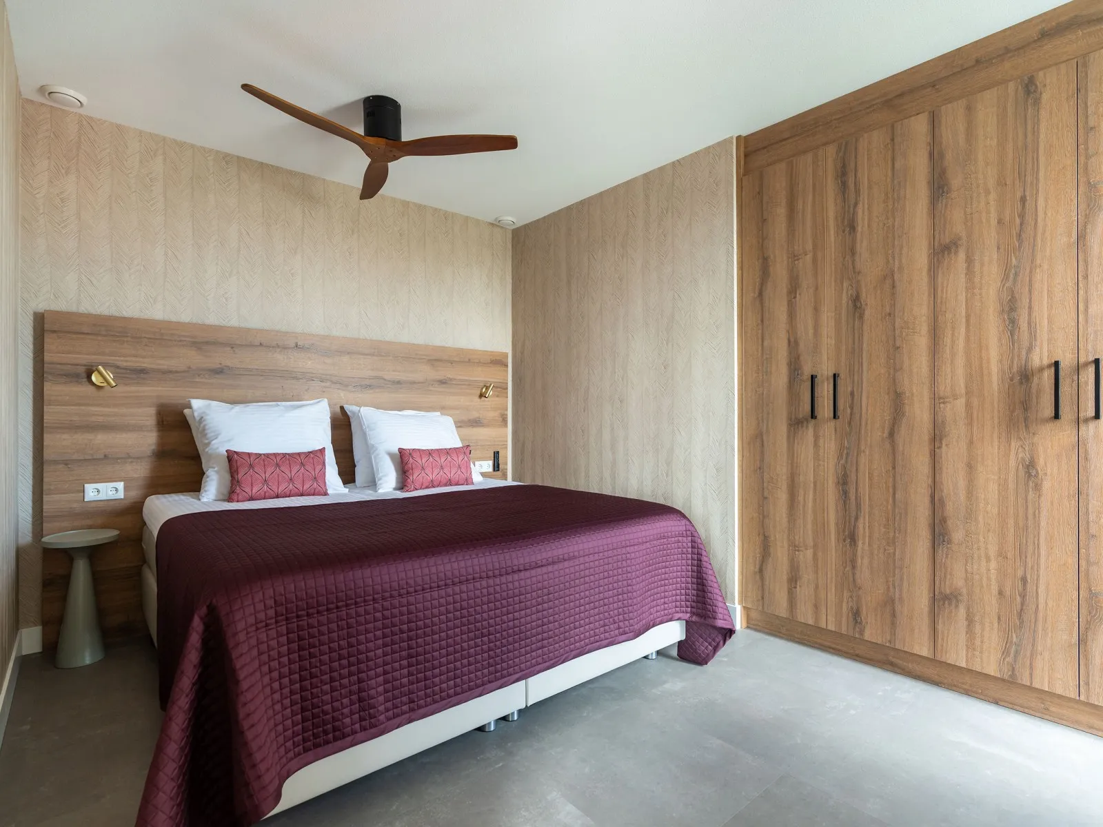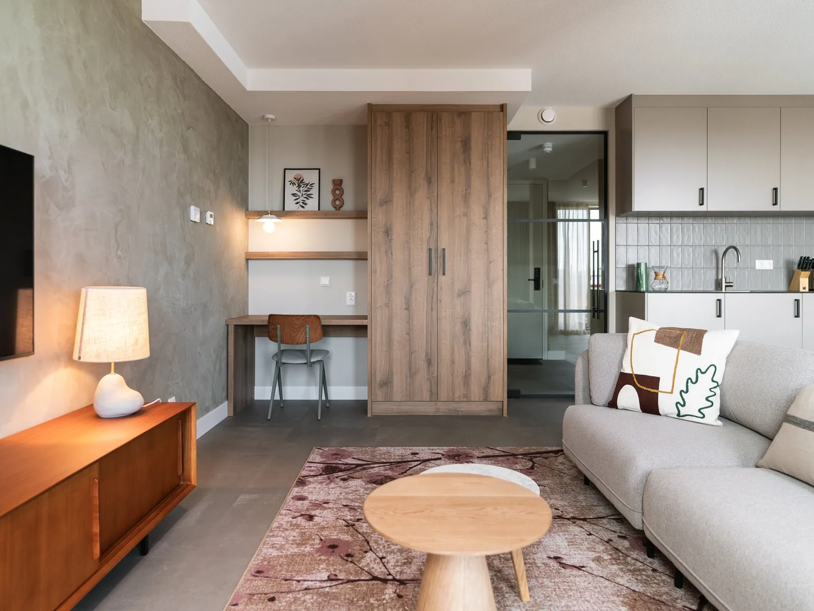 These spacious 2-bedroom apartments, each covering 91 sqm, provide a generous alternative to the smaller 2-bedroom units. They can comfortably host up to 4 guests, making them ideal for both shorter and extended stays. Upon entering, you'll immediately sense the warm and inviting atmosphere consistently woven into the interior design. This ambiance is marked by a harmonious fusion of natural colors, materials, and contemporary technology. The apartment boasts a fully equipped kitchen, a roomy dining area, a comfortable sofa, and a large SMART TV with Chromecast. Both bedrooms are spacious and come equipped with comfortable beds, SMART TVs with Chromecast, desks, and ample closet space. The large bathroom includes a shower, a double washbasin with drawers, a heated mirror, and a toilet. There is also a separate second toilet and a dedicated laundry room furnished with a washing machine and dryer. Additionally, the apartment features a 4 sqm balcony. Impressively, the electricity and heat you'll utilize during your stay are primarily generated by solar collectors, underscoring the sustainability of BizStay Walden as an eco-friendly building.
